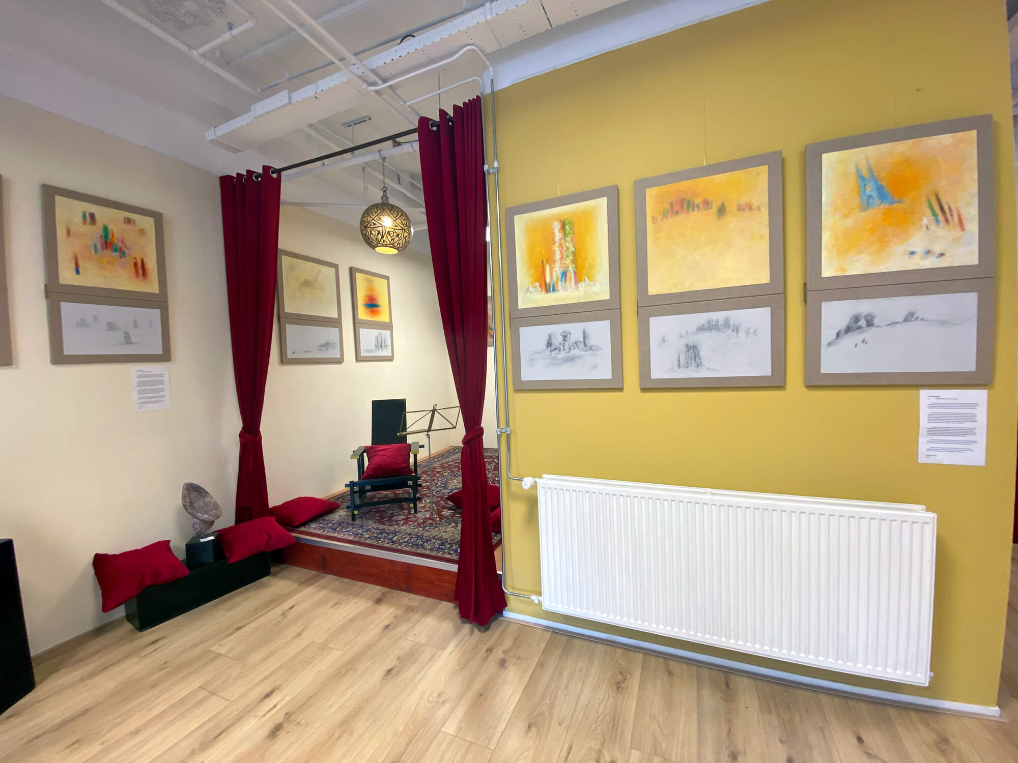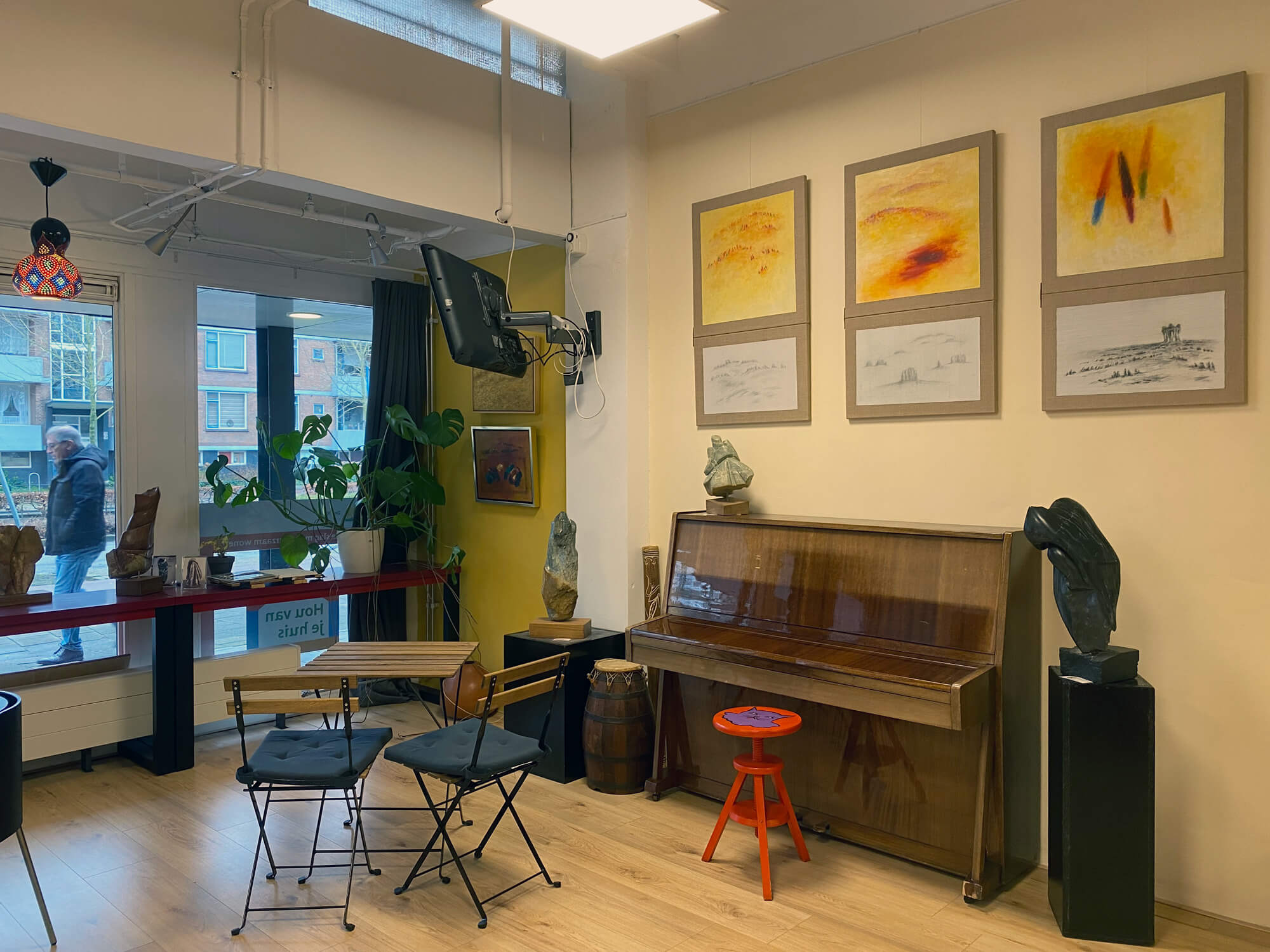 - Faciliteiten: klein podium (2 tot 4 personen), gestemde piano, pentry en theaterbar, muren voor tentoonstellen van kunstwerken