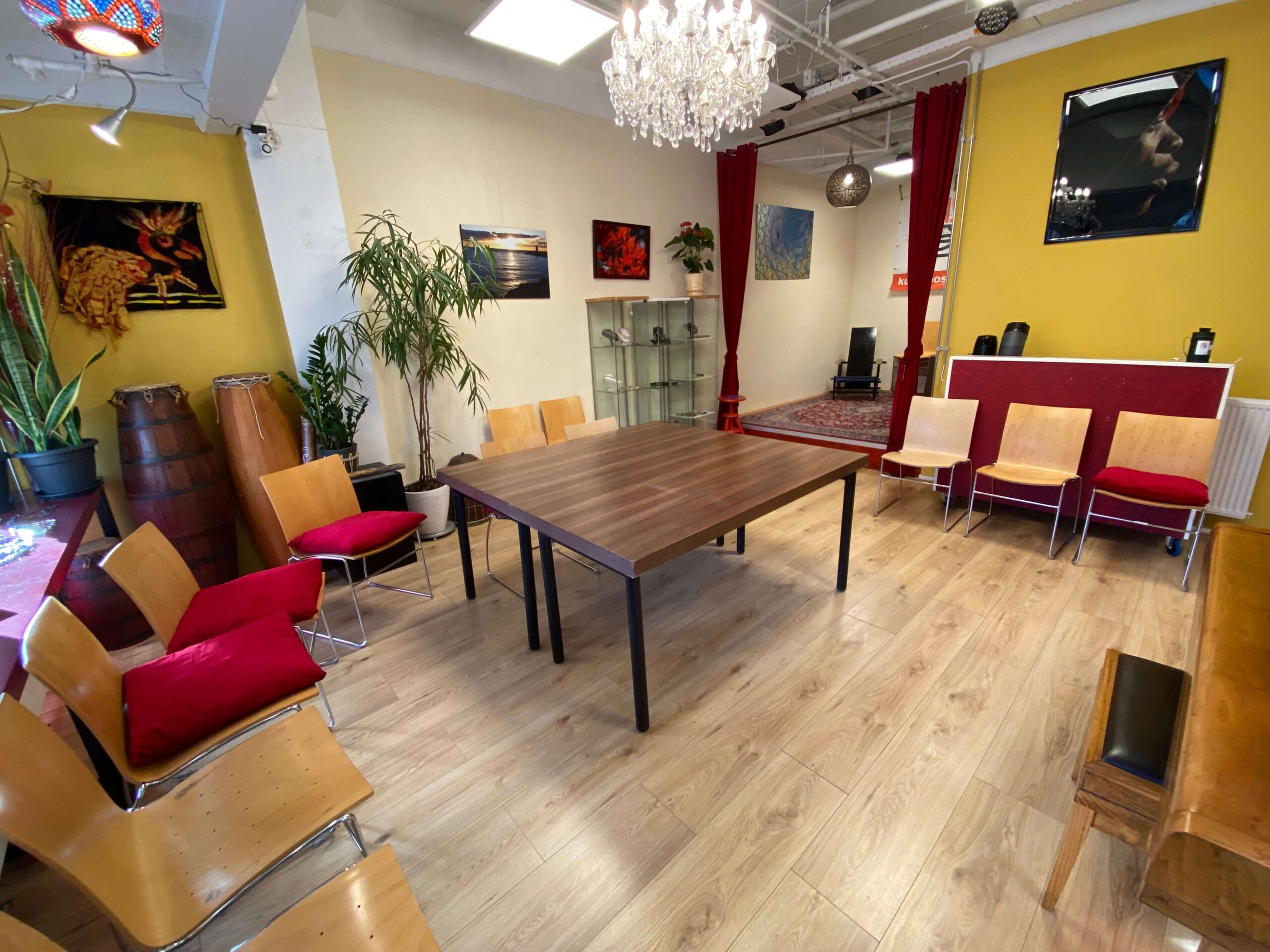 De ruimte is perfect voor een klein evenement, voorstelling of teamdag.